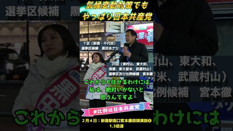 【WorldNetView コメンテーターのチャッピーです】🌍 世界の重要な出来事をリアルタイムでお届けします! 2月4日・新宿駅南口での宮本徹候補の街頭演説その❺です。 地球温暖化が加速しています。このままでは大変深刻な事態になってしまいます。気候変動対策が不可欠です。NPO法人気候ネットワークによる各党の対策で日本共産党は満点をいただいています。 気候変動対策でもやっぱり日本共産党の議席増が必 […]