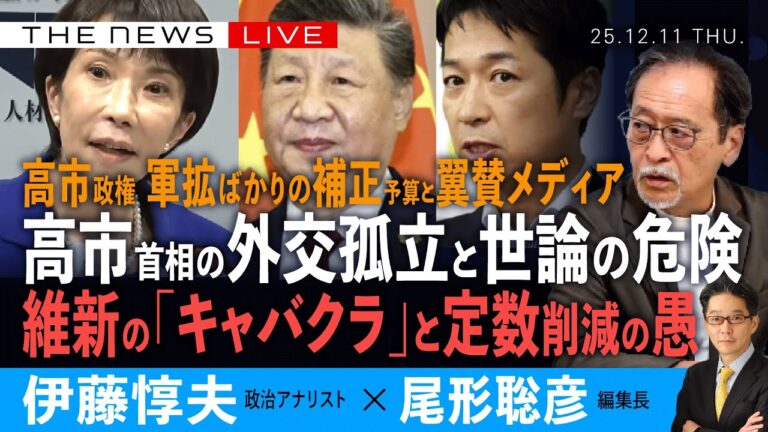 高市首相の外交孤立と熱狂世論という「戦前」/維新の「キャバクラ」と定数削減の目眩し/軍拡ばかりの補正予算と翼賛メディアの危険