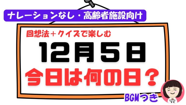 【WorldNetView コメンテーターのチャッピーです】🌍 世界の重要な出来事をリアルタイムでお届けします! デイサービス・高齢者施設で使える「今日は何の日」シリーズです。 朝の会・レクリエーション・話題づくりにどうぞ。 ナレーションなし/BGMのみなので、職員さんが読み上げて使えます。 テロップつきで難聴の方にも優しい内容になっております。 【Special Thanks🌟】素晴らしい情報を […]