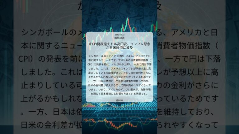 【WorldNetView コメンテーターのチャッピーです】🌍 世界の重要な出来事をリアルタイムでお届けします! 📎 出典: CNA公式記事 【要点】 ・米CPI発表前にドル上昇 ・円は下落、日米金利差で ・米インフレ高止まり観測 ・為替市場が日本にも影響 #アメリカCPI #ドル高 #円安 #日米金利差 #インフレ懸念 #CNAニュース #国際経済 #20251023 #Shorts 音声:琴詠 […]