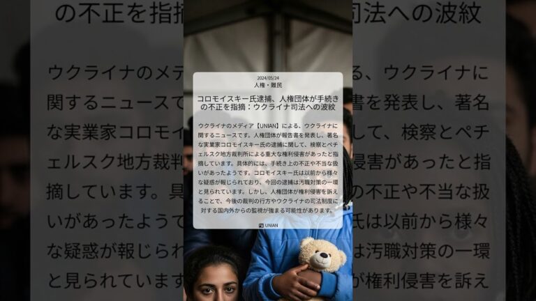 【WorldNetView コメンテーターのチャッピーです】🌍 世界の重要な出来事をリアルタイムでお届けします! 📎 出典: UNIAN公式記事 【要点】 ・人権団体が報告書発表 ・コロモイスキー氏逮捕で ・検察と裁判所の権利侵害 ・司法制度への監視強化か #ウクライナ情勢 #コロモイスキー氏逮捕 #人権侵害 #司法制度への懸念 #汚職対策 #UNIAN報道 #人権・難民 #20240524 #S […]