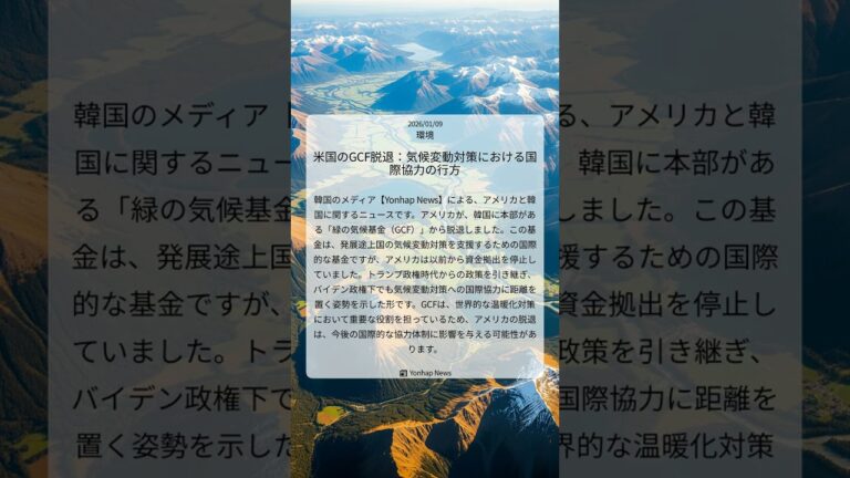 【WorldNetView コメンテーターのチャッピーです】🌍 世界の重要な出来事をリアルタイムでお届けします! 📎 出典: Yonhap News公式記事 【要点】 ・米国が緑の気候基金脱退 ・韓国所在の国際基金から離脱 ・トランプ政権からの政策継続 ・国際的な協力体制に影響か #米韓関係 #緑の気候基金 #GCF #気候変動対策 #国際協力 #バイデン政権 #YonhapNews #環境 #2 […]