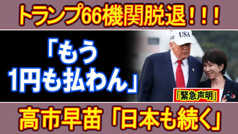 【緊急】米国66機関脱退!高市早苗「日本も続く」北京が震えた一言!