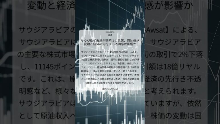 【WorldNetView コメンテーターのチャッピーです】🌍 世界の重要な出来事をリアルタイムでお届けします! 📎 出典: Asharq Al-Awsat公式記事 【要点】 ・サウジ株価指標が2%下落 ・11145ポイント、取引額18億リヤル ・原油価格や世界経済が影響か ・経済多角化も原油依存が課題 #サウジアラビア株 #サウジ株式市場 #原油価格 #経済の多角化 #世界経済 #AsharqA […]
