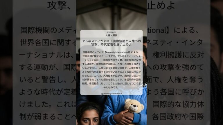 【WorldNetView コメンテーターのチャッピーです】🌍 世界の重要な出来事をリアルタイムでお届けします! 📎 出典: Amnesty International公式記事 【要点】 ・アムネスティが各国に警告 ・有力国等が人権侵害を加速 ・国際協調や法への攻撃を懸念 ・人権を奪う時代阻止を要請 #AmnestyInternational #人権 #国際協調 #権利擁護 #人権を守ろう #世界 […]