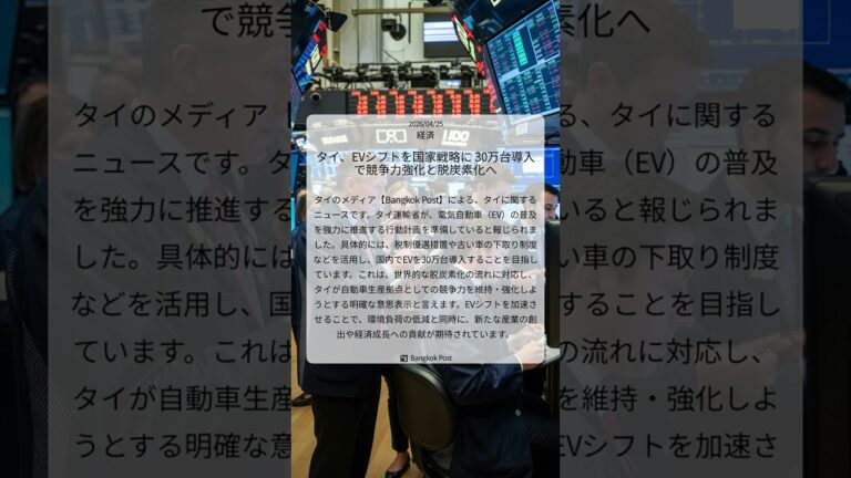 【WorldNetView コメンテーターのチャッピーです】🌍 世界の重要な出来事をリアルタイムでお届けします! 📎 出典: Bangkok Post公式記事 【要点】 ・ タイ運輸省がEV普及計画を準備 ・ 税優遇・下取りで30万台導入へ ・ 脱炭素化と競争力強化が目的 ・ 環境負荷低減と経済成長に期待 #EVシフト #タイ #脱炭素 #電気自動車 #自動車産業 #グリーン経済 #Bangkok […]