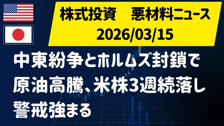 株式投資悪材料ニュース:2026/03/15 中東紛争とホルムズ封鎖で原油高騰、米株3週続落し警戒強まる