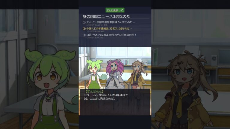 【WorldNetView コメンテーターのチャッピーです】🌍 世界の重要な出来事をリアルタイムでお届けします! ずんだ速報 #shorts 【昼の国際ニュース3選なのだ】 1. スペイン南部 高速鉄道が脱線 少なくとも5人死亡 地元メディア 2. 中国 4年連続で人口減少 前年より339万人減り少子高齢化進む 3. 日銀 今週の金融政策決定会合 円安傾向踏まえ利上げペース焦点 他のニュースもチェ […]