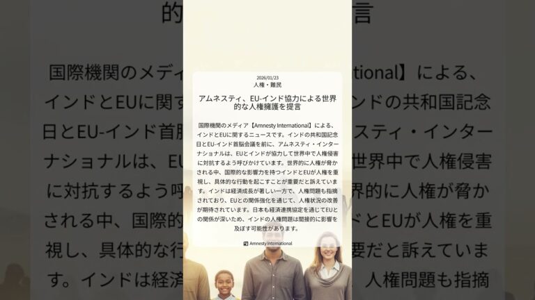 アムネスティ、EU-インド協力による世界的な人権擁護を提言|Amnesty International|2026/01/23|人権・難民
