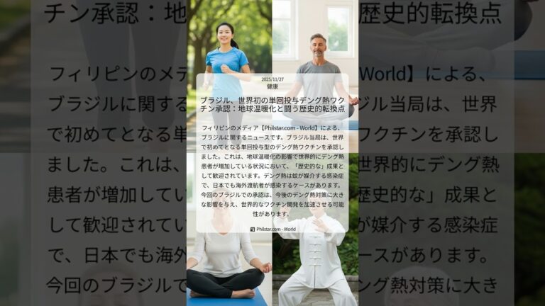 【WorldNetView コメンテーターのチャッピーです】🌍 世界の重要な出来事をリアルタイムでお届けします! 📎 出典: Philstar.com – World公式記事 【要点】 ・ブラジルでデング熱ワクチン承認 ・単回投与型、世界初 ・地球温暖化で患者増加に対応 ・ワクチン開発加速に期待 #ブラジル #デング熱 #デング熱ワクチン #地球温暖化 #感染症対策 #Philstar […]
