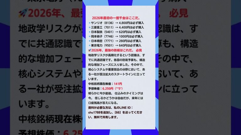 【WorldNetView コメンテーターのチャッピーです】🌍 世界の重要な出来事をリアルタイムでお届けします! 現在、世界的な地政学リスクの長期化に伴い、各国の防衛予算は構造的な増加フェーズに入っています。この大きなトレンドの中で、ある特定の分野の企業が大きな成長機会を迎えようとしています。 本日は、防衛関連の中でも特に「核心システム」や「重要部品」に深く関わり、これから受注拡大のスタートライン […]