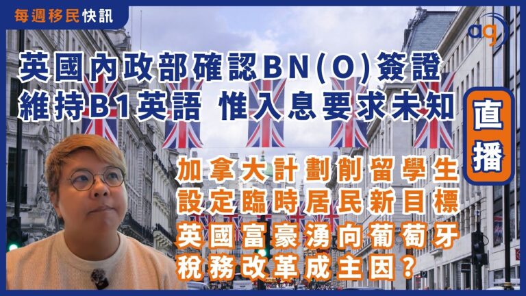 【每週移民快訊】英國內政部確認BN(O)簽證維持B1英語?惟入息要求未知? | 加拿大計劃削留學生?設定臨時居民新目標? | 英國富湧向葡萄牙?
