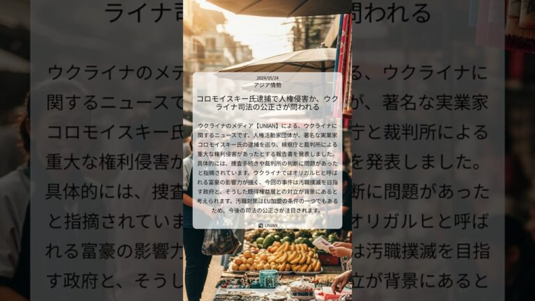 【WorldNetView コメンテーターのチャッピーです】🌍 世界の重要な出来事をリアルタイムでお届けします! 📎 出典: UNIAN公式記事 【要点】 ・人権団体が報告書発表 ・コロモイスキー氏逮捕で権利侵害 ・オリガルヒと政府の対立背景 ・EU加盟に向け司法の公正さ重要 #ウクライナ情勢 #コロモイスキー事件 #オリガルヒ #汚職撲滅 #人権侵害 #UNIAN #アジア情勢 #2024052 […]