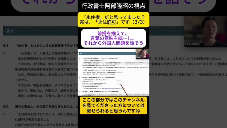 【WorldNetView コメンテーターのチャッピーです】🌍 世界の重要な出来事をリアルタイムでお届けします! 「永住権」という言い方はよく見かけますが、日本の制度上は「永住許可」です。 このショート動画三本シリーズでは、外国人問題・移民問題を議論する前提として、まず「永住権」と「永住許可」との違い、永住が許可される三つの要件を整理しています。 外国人問題・移民問題に代表される二項対立が想定され […]