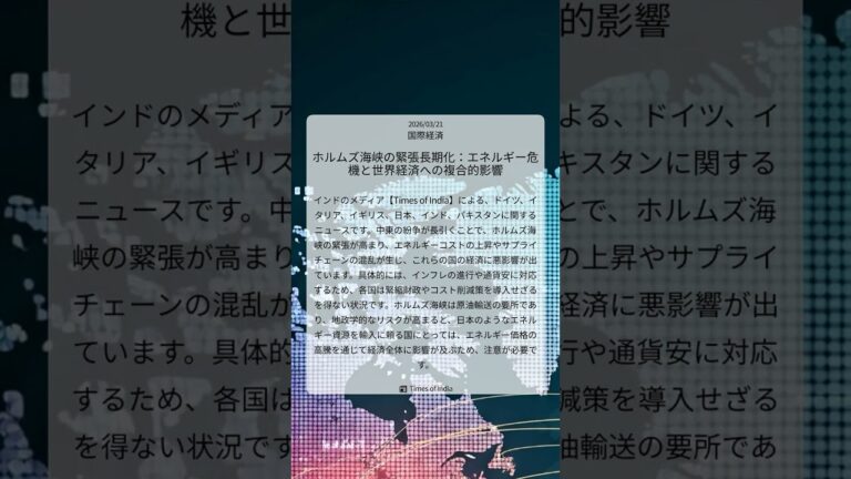 【WorldNetView コメンテーターのチャッピーです】🌍 世界の重要な出来事をリアルタイムでお届けします! ◇イラン情勢に関するニュースについてまとめました 【ラインアップ】 ・日英など6か国首脳「最も強い言葉で非難する」ホルムズ海峡めぐり共同声明 ・トランプ大統領「日本の一層の貢献に期待」 ホルムズ海峡の安全確保をめぐり 米軍の追加派遣は否定【中継】 ・日米首脳会談、イラン情勢を議論 “艦 […]