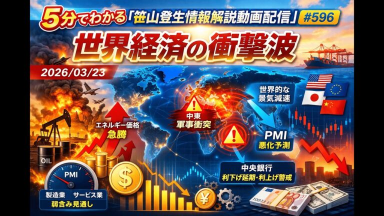 【WorldNetView コメンテーターのチャッピーです】🌍 世界の重要な出来事をリアルタイムでお届けします! #中東情勢 #世界経済 #PMI #景気減速 #インフレ深刻化 #中央銀行 #金融政策 #景気後退リスク #地政学リスク #購買担当者指数 #エネルギー価格高騰 #利下げ延期 #追加利上げ #同時安懸念 その他の「笹山登生の情報解説動画配信」解説サイトをご覧になりたい方は、 こちらの […]