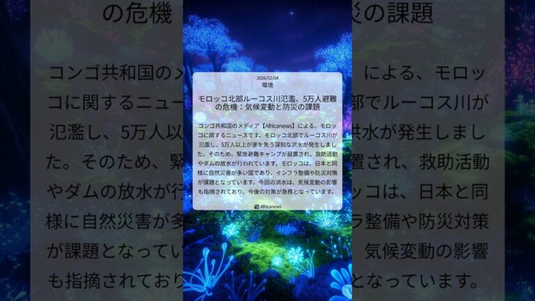【WorldNetView コメンテーターのチャッピーです】🌍 世界の重要な出来事をリアルタイムでお届けします! 📎 出典: Africanews公式記事 【要点】 ・モロッコ北部で洪水発生 ・5万人以上が家を失う ・緊急避難キャンプ設置 ・気候変動の影響も指摘 #モロッコ洪水 #ルーコス川 #緊急避難キャンプ #救助活動 #気候変動 #Africanews #環境 #20260204 #Shor […]