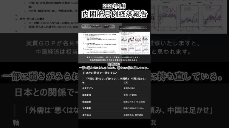 世界経済 内閣府月例経済報告令和8年1月分内容 #政治経済 #主要経済指標 #月例経済報告