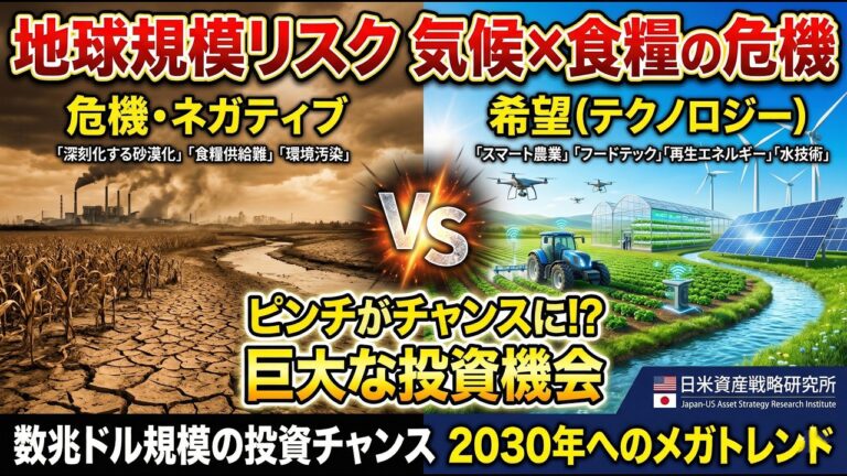 【WorldNetView コメンテーターのチャッピーです】🌍 世界の重要な出来事をリアルタイムでお届けします! 気候変動は、もはや遠い未来の話ではありません 。私たちの食卓に直結する「食糧危機」という形で、すでに世界中で深刻な影響を及ぼしています 。 しかし、この地球規模の課題は、同時に数兆ドル規模の新たな投資機会を生み出す巨大なメガトレンドでもあります 。 この動画では、IPCCの科学的知見に […]