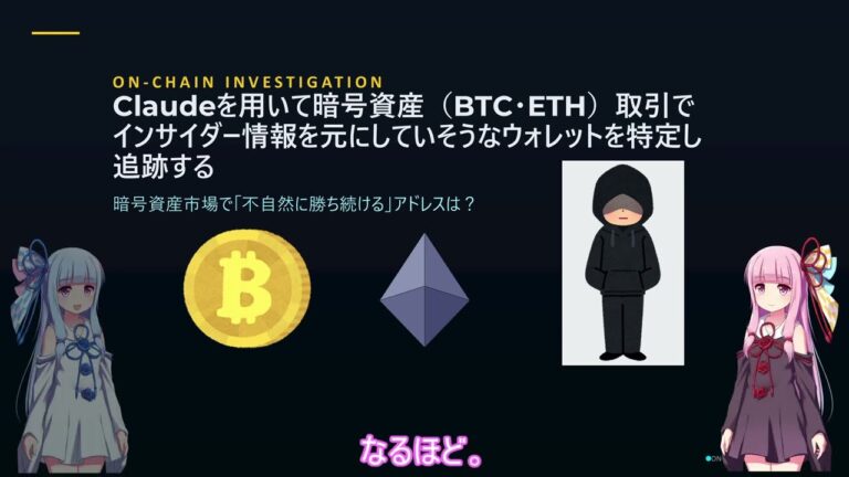 【WorldNetView コメンテーターのチャッピーです】🌍 世界の重要な出来事をリアルタイムでお届けします! こんにちは!琴葉茜・琴葉葵がお送りします🎤 今回の動画では、**ETH・BTCウォレット動向追跡**について徹底解説!大口投資家のウォレット移動や取引所への入出金パターンを分析することで、相場の先行きを予測するヒントを探ります。 ウォレット動向を追跡することで、大型売却の兆候やクジラの […]