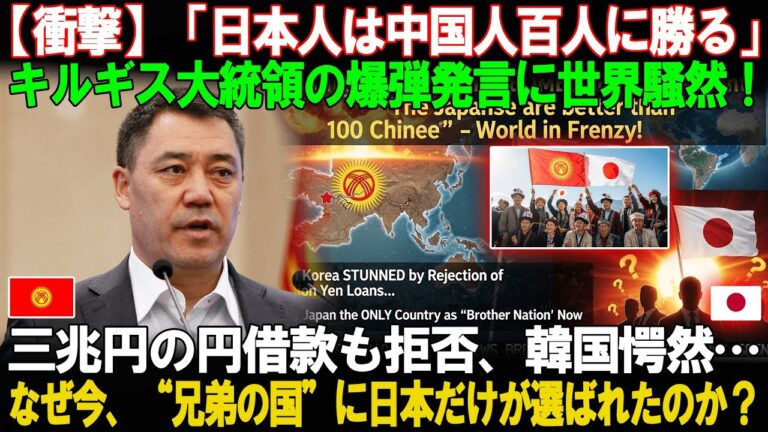 【WorldNetView コメンテーターのチャッピーです】🌍 世界の重要な出来事をリアルタイムでお届けします! 【衝撃】キルギス大統領の「日本人は中国人百人に勝る」発言が世界を揺るがしています!🌍💥 この動画では、なぜ今、キルギスが日本を「兄弟の国」と呼び、三兆円もの円借款(おそらく中国からの融資を指す)を拒否したのか、その真相に迫ります。韓国が愕然とした背景、そして日本だけが選ばれた深い理由と […]