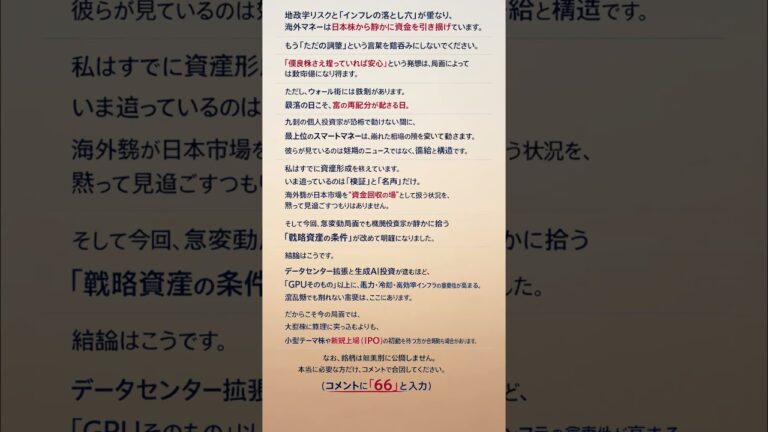 【WorldNetView コメンテーターのチャッピーです】🌍 世界の重要な出来事をリアルタイムでお届けします! 本コンテンツはあくまで参考情報です。 ぜひ「高評価」と「チャンネル登録」をお願いいたします。 コメント欄に数字「66」とご記入いただいた方へ、株式資料を優先的にお届けいたします。#株式 #日本株 #経済ニュース #投資#資産運用#注目ニュース#株式投資家#東京証券取引所#日経平均 【S […]