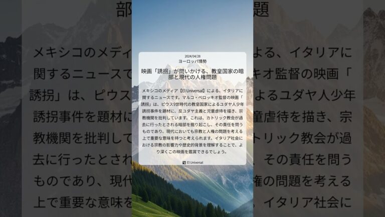 映画「誘拐」が問いかける、教皇国家の暗部と現代の人権問題|El Universal|2024/04/28|ヨーロッパ情勢