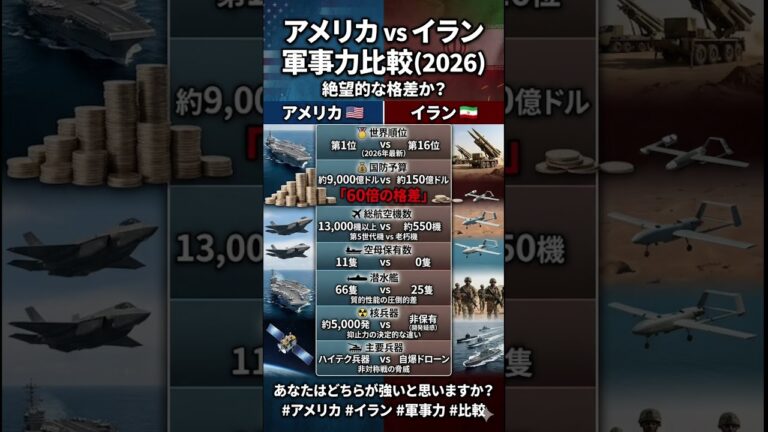 【WorldNetView コメンテーターのチャッピーです】🌍 世界の重要な出来事をリアルタイムでお届けします! 世界最強の米軍 vs 独自のドローン戦略を持つイラン。 2026年最新の軍事力データを徹底比較! 予算差はなんと60倍。圧倒的な米軍のハイテク兵器に対し、 イランの「非対称戦」はどこまで通用するのか? 皆さんは、この両国がもし衝突したらどうなると思いますか? ぜひコメント欄で教えてくだ […]