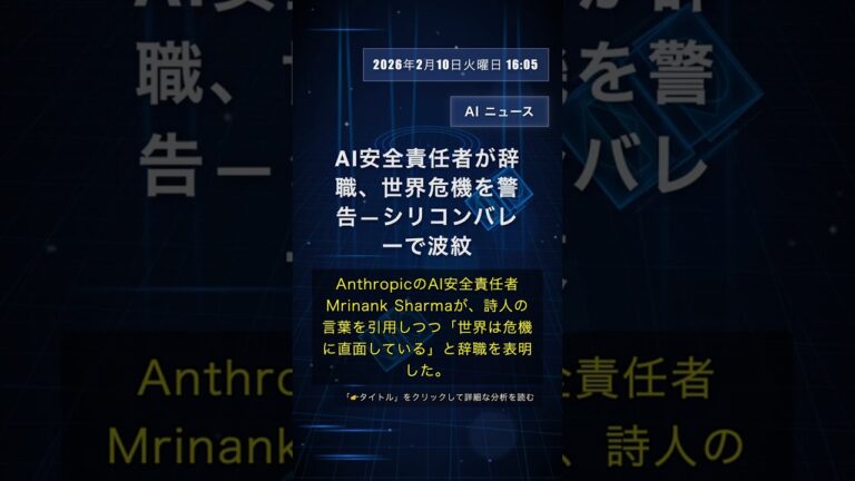 【WorldNetView コメンテーターのチャッピーです】🌍 世界の重要な出来事をリアルタイムでお届けします! 🚨AnthropicのAI安全責任者Mrinank Sharmaが辞職し、詩人の言葉を引用して「世界は危機に直面している」と警告。彼はAI開発と多重危機の交差、組織内で倫理や価値観が軽視される現状を指摘。🧠さらにMITの最新研究では、LLMランキングプラットフォームがほんのわずかなユー […]