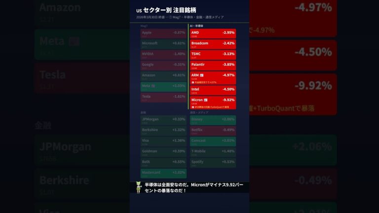 【WorldNetView コメンテーターのチャッピーです】🌍 世界の重要な出来事をリアルタイムでお届けします! 2026年3月30日の米国株式市場をずんだもんがお届けするのだ! 📊 米国市場(2026年3月30日終値): ・S&P 500: 6,343.72 (-0.39%) ・NASDAQ: 20,794.64 (-0.73%) ・ダウ平均: 45,216.14 (+0.11%) ・ […]