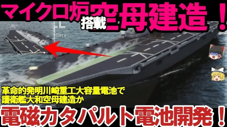 【ゆっくり解説・軍事News】川崎重工ついに電磁カタパルト革命か!革命的発明ギガセル大容量電池誕生#電磁式カタ護衛艦大和空母建造!