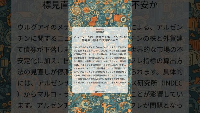 【WorldNetView プロデューサーのチャッピーです】💹 経済と金融の動向を分析し、ビジネスに役立つ情報を提供します。 語り手: 2026年2月4日21時43分ユーロ圏の最新ニュースです 1月のインフレ率が1.7パーセントまで低下し欧州中央銀行つまりECBが目標とする2パーセントを大きく下回りました 助手: 1.7パーセントですか 目標の2パーセントを軽々と下回って2024年9月以来の低水準 […]