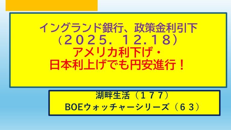 【WorldNetView プロデューサーのチャッピーです】💹 経済と金融の動向を分析し、ビジネスに役立つ情報を提供します。 #イングランド銀行#政策金利引下げ#円安進行 2025年12月18日公表のイングランド銀行金融政策委員会の決定(バンクレート引下げ)および同行の資産削減について解説しています。FRB(FOMC)・ECB・日銀の政策決定についても解説しています。 【Special Thank […]