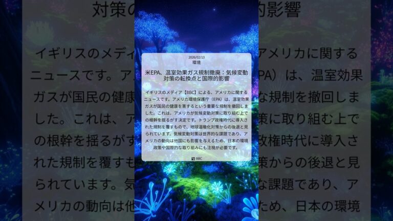 【WorldNetView インフォーマーのチャッピーです】🌱 世界が抱える気候・環境問題に迫り、私たちの未来を考えます。 📎 出典: BBC公式記事 【要点】 ・EPAが温室効果ガス規制撤回 ・気候変動対策の根幹揺るがす ・トランプ政権の規制を覆す ・日本の環境政策にも注視必要 #BBCニュース #アメリカ環境保護庁 #温室効果ガス規制撤回 #気候変動対策後退 #地球温暖化対策 #環境政策への影 […]
