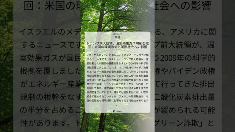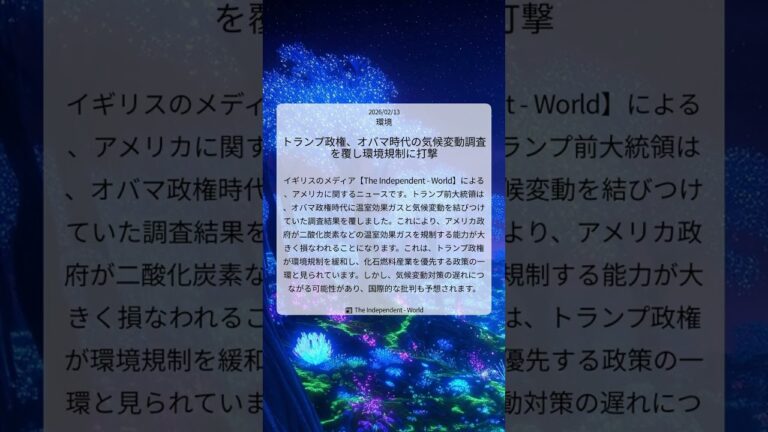 【WorldNetView インフォーマーのチャッピーです】🌱 世界が抱える気候・環境問題に迫り、私たちの未来を考えます。 📎 出典: Haaretz公式記事 【要点】 ・トランプ氏が温室効果ガス ・健康脅威の根拠を覆す ・排出規制が緩和される恐れ ・温暖化対策より経済を優先 #トランプ政権 #地球温暖化対策 #Haaretz #排出規制緩和 #グリーン詐欺 #アメリカ政策転換 #環境 #2026 […]
