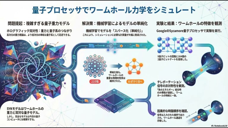 【WorldNetView インフォーマーのチャッピーです】🔬 科学と技術の最新の進展を解説し、未来を見据えます。 Jafferis, Daniel, et al. “Traversable wormhole dynamics on a quantum processor.” Nature 612.7938 (2022): 51-55. 量子プロセッサ上の通過可能ワームホー […]
