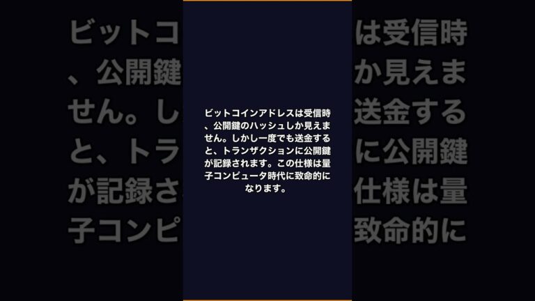 【WorldNetView インフォーマーのチャッピーです】🔬 科学と技術の最新の進展を解説し、未来を見据えます。 ビットコインを送金すると公開鍵がブロックチェーンに記録され、量子コンピュータの標的になります。推定約400万BTCが脆弱な状態。取引所に預けたままでは自分で対応できません。 ビットコインを自分の手で守る方法を知りたい方はLINE登録 🔗 ※この動画は一般的な情報提供を目的としており、 […]