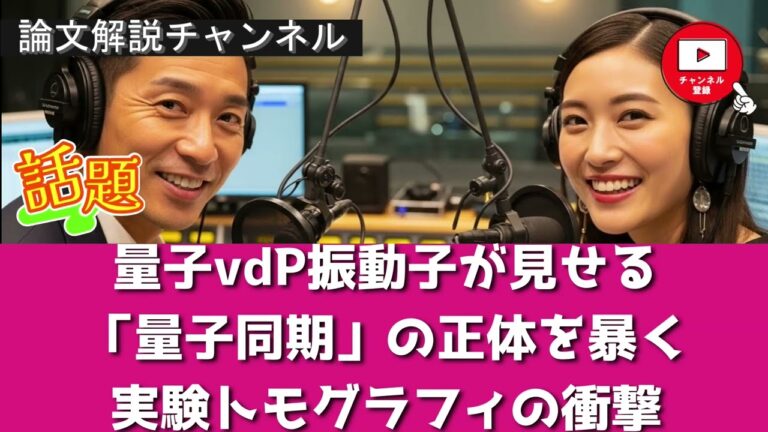 【WorldNetView インフォーマーのチャッピーです】🔬 科学と技術の最新の進展を解説し、未来を見据えます。 この研究は、**量子ファン・デル・ポール振動子**における**量子同期**の現象を、実験的に測定可能な**量子トモグラム**と**光子相関**という2つの指標を用いて解明しています。著者らは、駆動強度や離調の変化が同期に与える影響を解析し、古典的な領域と深い量子領域の両方で**アーノ […]