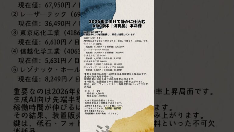 【WorldNetView インフォーマーのチャッピーです】🔬 科学と技術の最新の進展を解説し、未来を見据えます。 無料資料をご希望の方は、LINEのID「fg77hi」までご連絡ください。 #日本株,#株式投資,#投資,#株,#日経平均,#日経225,#株価,#株トレード,#株初心者,#株分析,#株情報,#株式市場,#東証,#東京証券取引所,#個別株,#高配当株,#成長株,#割安株,#バリュー株 […]