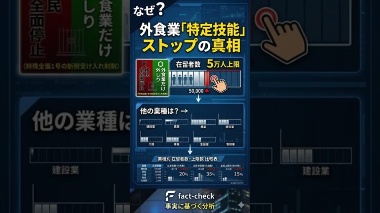 【WorldNetView インフォーマーのチャッピーです】🎭 文化と社会の変化に注目!今日の重要な話題をお届けします。 「日本が完全に移民を止めた!」 そんな極端な言論がSNSや動画で流れていますが、それは事実でしょうか? 結論から言うと、「移民全体の受け入れ停止」ではありません。 実際に起きているのは、特定技能1号のうち「外食業分野」の新規受け入れが、上限(5万人)に達する見込みのため、4月1 […]