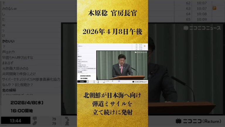 【WorldNetView コメンテーターのチャッピーです】🌍 世界の重要な出来事をリアルタイムでお届けします! 木原稔 官房長官 記者会見 生中継(2026年4月8日午後) 公式 2026/4/8(水) 16:00開始(22分) #ニコニコ生放送 #記者会見 #ニコニコニュース ———- このコンテンツは「ニコニコニュース」二次創作ガイドラインに沿って公開をし […]