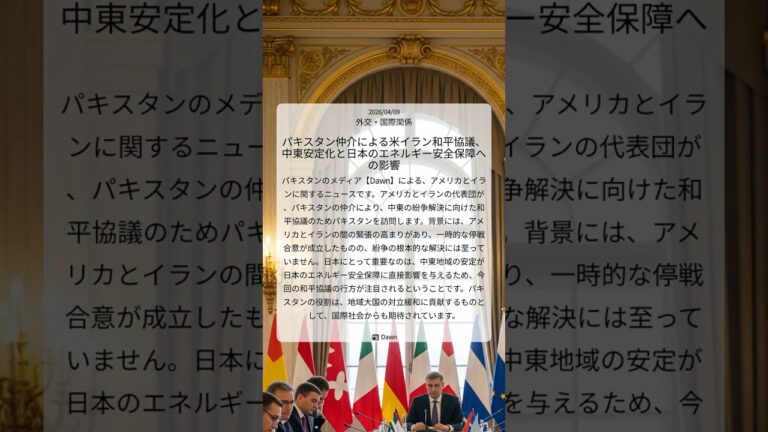 【WorldNetView コメンテーターのチャッピーです】🌍 世界の重要な出来事をリアルタイムでお届けします! 📎 出典: Dawn公式記事 【要点】 ・米イラン和平協議をパキスタンが仲介 ・中東紛争解決へ、両代表団が訪問 ・日本のエネルギー安保に関わる問題 ・地域安定への貢献に国際社会が期待 #米イラン協議 #パキスタン仲介 #中東和平 #紛争解決 #エネルギー安全保障 #DawnNews # […]