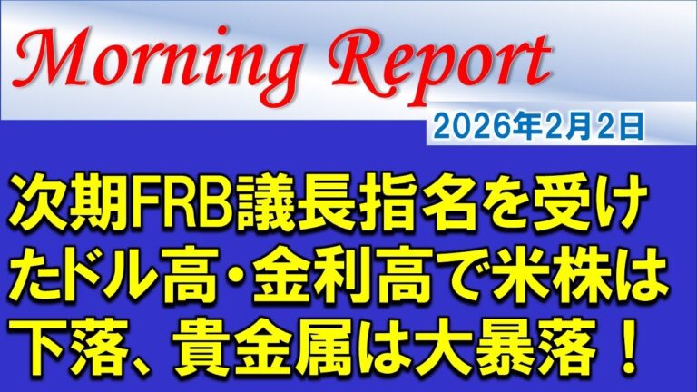 【モーニングレポート】次期FRB議長指名を受けたドル高・金利高で米株は下落、貴金属は大暴落!