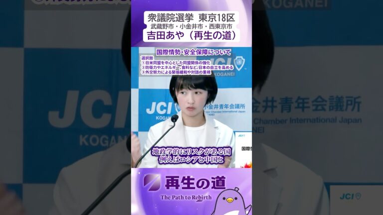 【WorldNetView コメンテーターのチャッピーです】🌍 世界の重要な出来事をリアルタイムでお届けします! 🟪#東京18区 #吉田あや (#再生の道) 【国際情勢・安全保障】 在ロシア日本国大使館での勤務や、JETROでは日系企業に向けて、ロシア・周辺国の政治・経済情勢を分析し提供してきた外交分野で実務経験のある 吉田あや さん。 安全保障に関しては、日米同盟を基盤としつつ、外交ルートを絶た […]