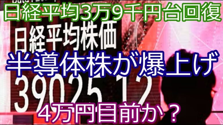 【WorldNetView コメンテーターのチャッピーです】🌍 世界の重要な出来事をリアルタイムでお届けします! 日経平均株価が一時3万9千円台を回復しました。 再び4万円の大台が視野に入る中、市場では強気ムードが広がっています。 今回の上昇をけん引したのは半導体関連株。 AI需要拡大を背景に装置メーカーなどに買いが集中しました。 さらに円安基調が続いていることで、海外投資家の資金流入も加速してい […]