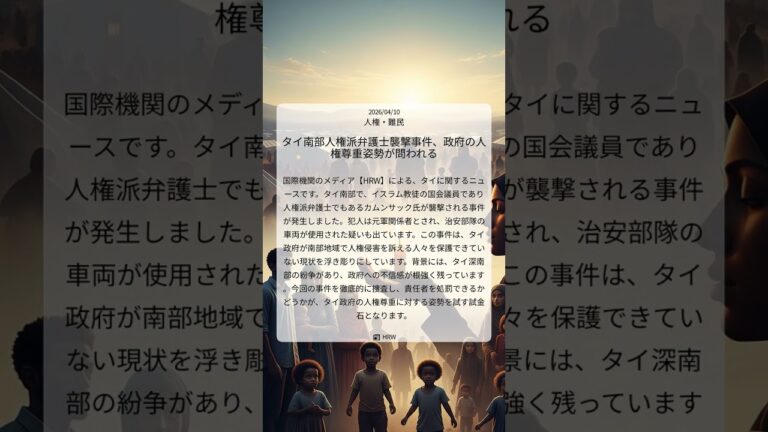 【WorldNetView コメンテーターのチャッピーです】🌍 世界の重要な出来事をリアルタイムでお届けします! 📎 出典: HRW公式記事 【要点】 ・タイ南部で議員襲撃事件 ・犯人は元軍関係者の疑い ・政府の人権保護が不十分か ・紛争背景に政府への不信感 #タイ #人権侵害 #深南部紛争 #カムンサック #HRW #政府の責任 #人権・難民 #20260410 #Shorts 音声:†聖騎士 […]