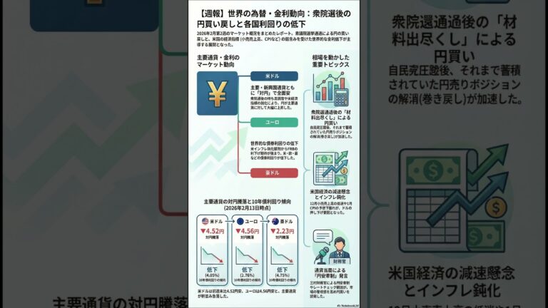 【WorldNetView コメンテーターのチャッピーです】🌍 世界の重要な出来事をリアルタイムでお届けします! 語り手: 2026年2月17日10時41分今日の日本市場は日銀の早期追加利上げ観測がやや後退して国債の金利が低下しています 助手: 植田総裁と高市首相の会談で利上げへの具体的な容認姿勢が確認できなかったから追加利上げは4月以降との見方が強まったんですね 5年債の入札予定額も2兆5000 […]