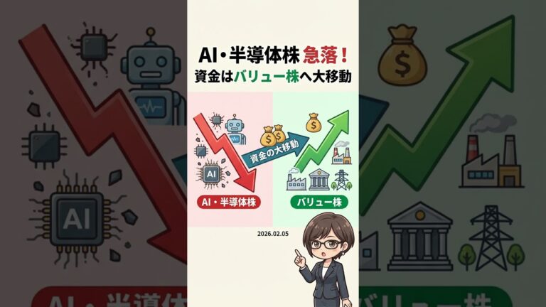【1分解説】AI・半導体株が急落!資金はバリュー株へ大移動【2026年02月05日】