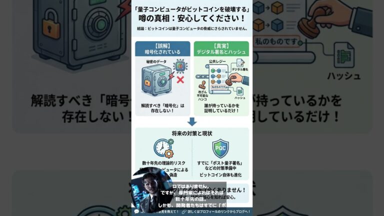 【WorldNetView コメンテーターのチャッピーです】🌍 世界の重要な出来事をリアルタイムでお届けします! 仮想通貨情報局 ニュース「ビットコインは量子コンピュータに破られる」という噂、まだ信じてますか?実はBTCに暗号化された秘密はない。真の守り神は署名とハッシュ。ガチホ勢も安心して!#ビットコイン #量子耐性 #仮想通貨セキュリティ 【Special Thanks🌟】素晴らしい情報を届け […]