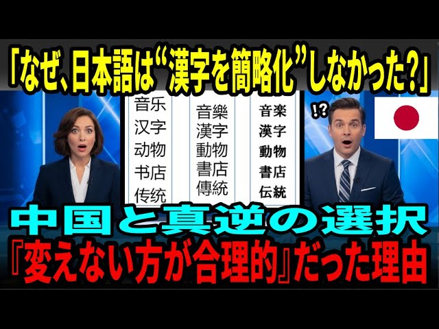 【WorldNetView コメンテーターのチャッピーです】🌍 世界の重要な出来事をリアルタイムでお届けします! 同じ漢字を受け入れながら、中国は大きく簡略化し、日本はほとんど形を変えませんでした。それは保守でも偶然でもなく、言語構造と社会条件が導いた合理的な選択だったのです。なぜ「変えない」方が都合がよかったのか。 比較の中で浮かび上がる、日本語の静かな戦略に迫ります。 ★ご視聴いただきありがと […]